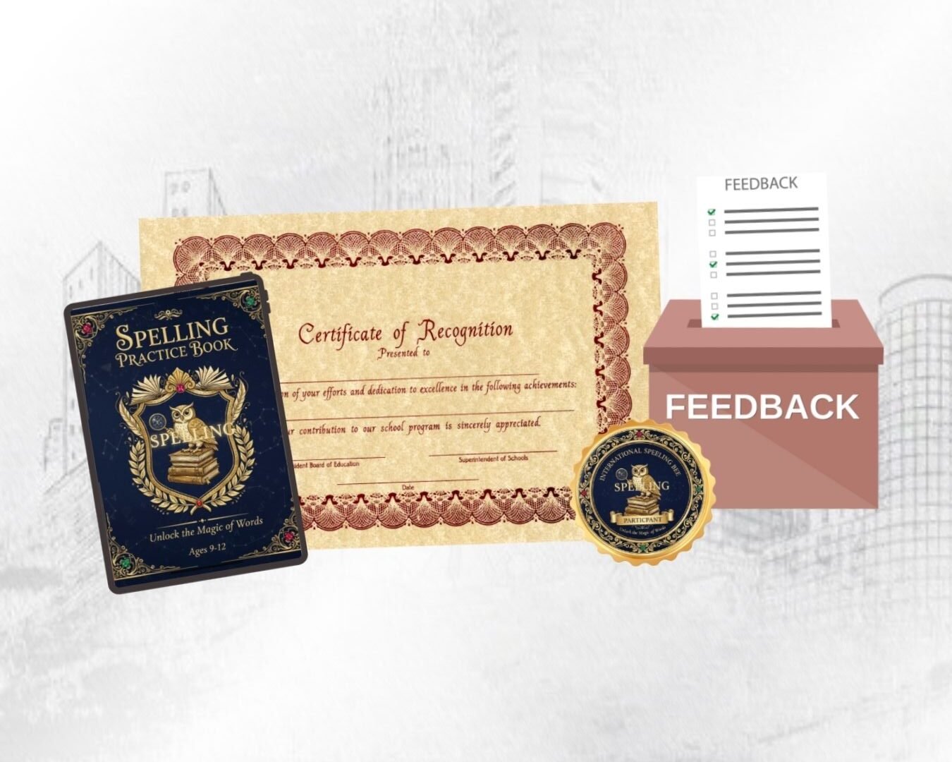 An official certificate to recognize your participation in the International Spelling Bee Competition 2025. Perfect for your academic portfolio. - Digital Spelling Practice Book